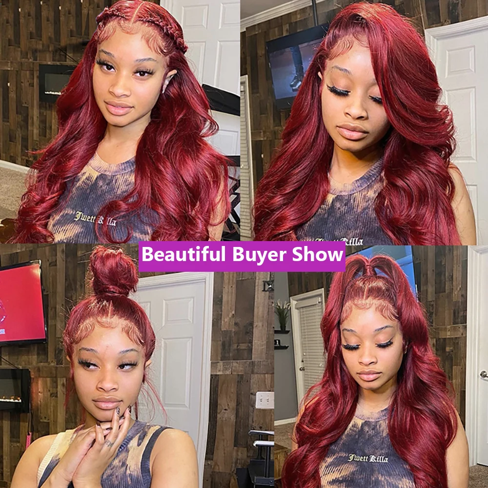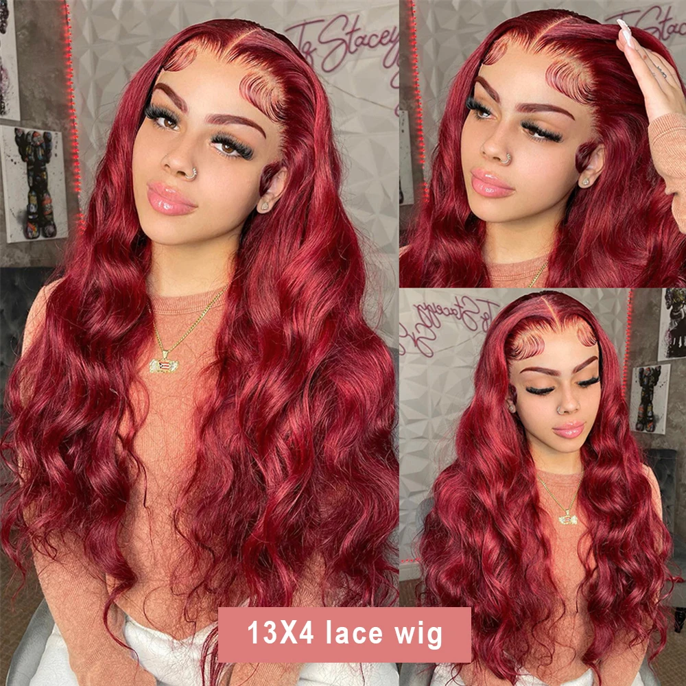 body wave human hair wigs: burgundy 13x6 hd lace frontal human hair wig