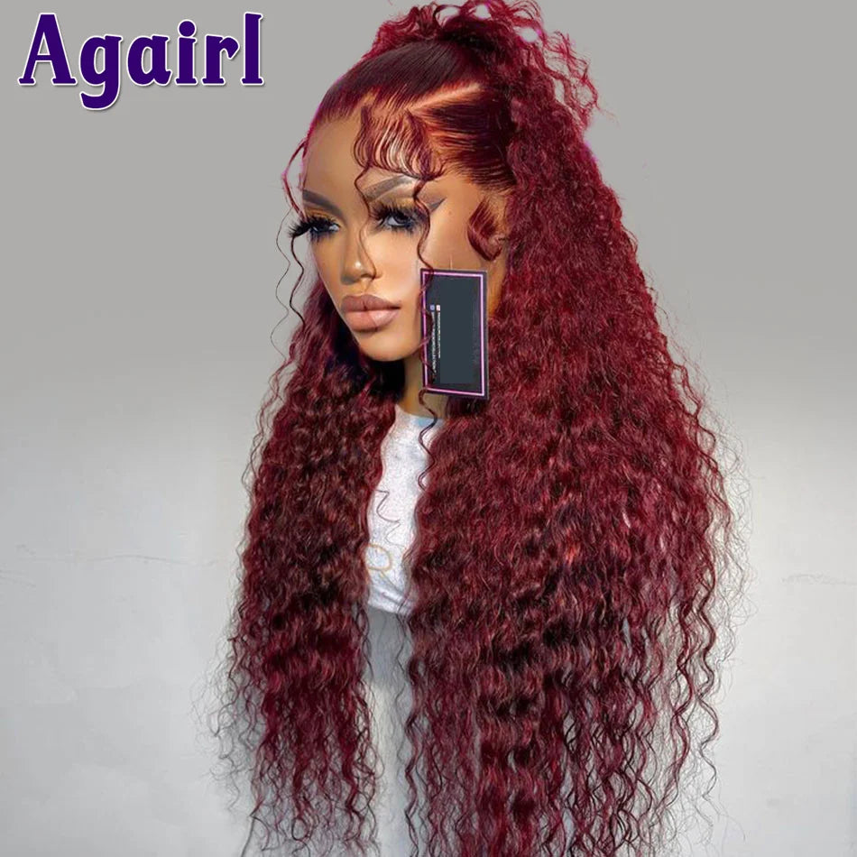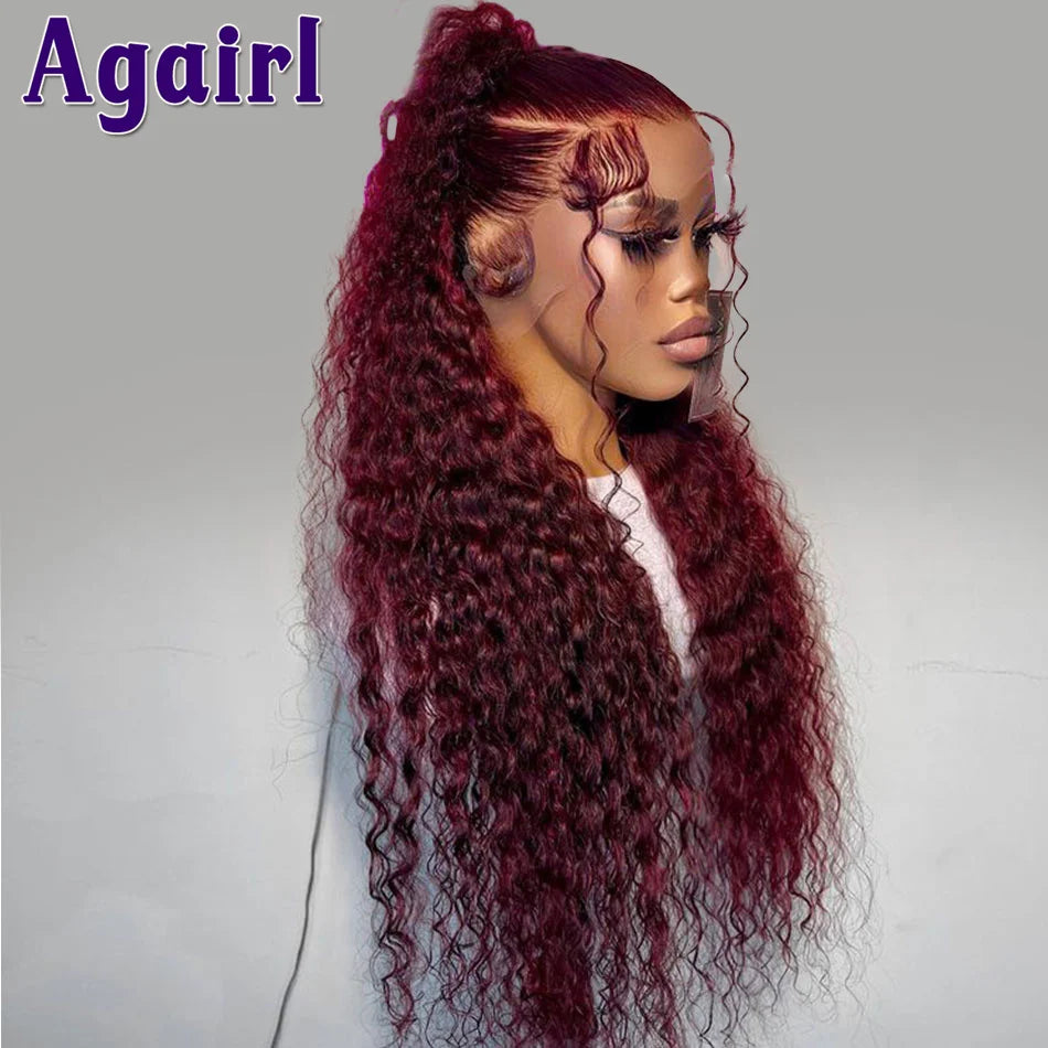 99J Dark Red Ready Go Wig Burgundy Kinky Curly Human Hair Wigs 13X4 13X6 Lace Frontal Wigs Brazilian Water Wave 6X4 Closure Wigs